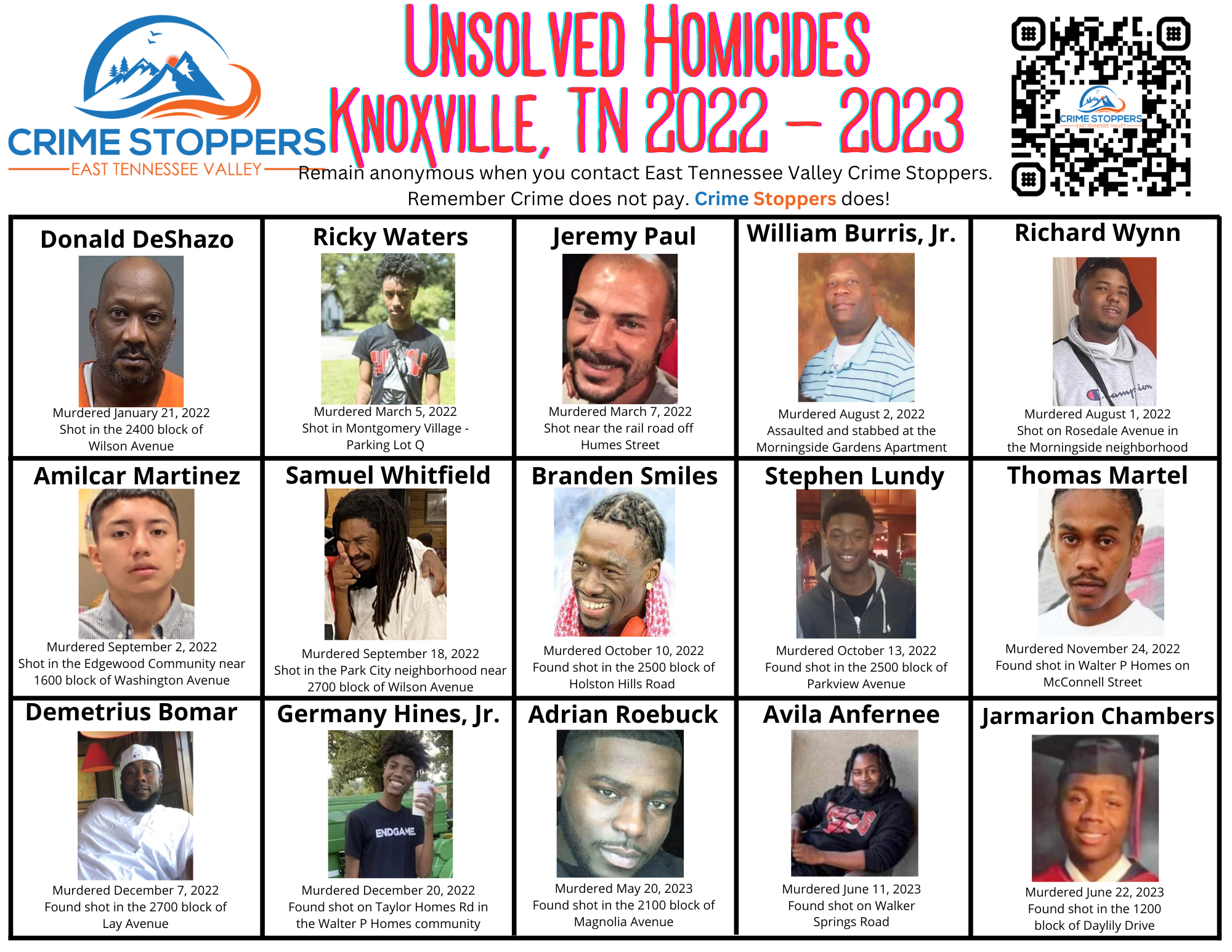 Anyone with information is urged to contact East Tennessee Valley Crime Stoppers: